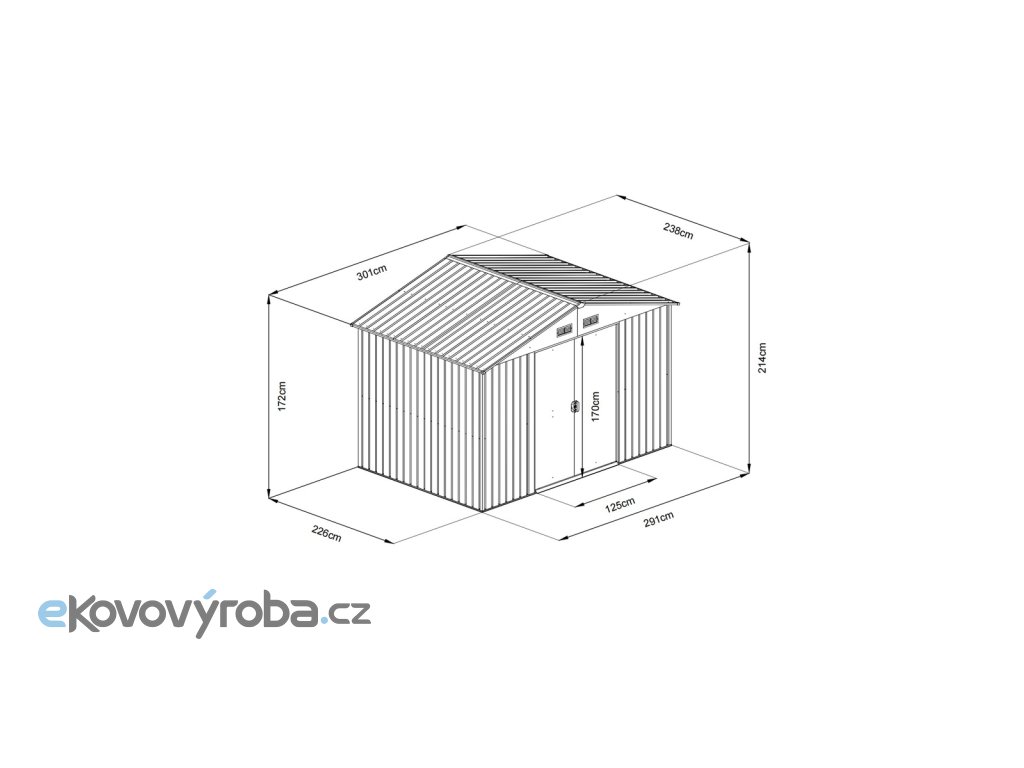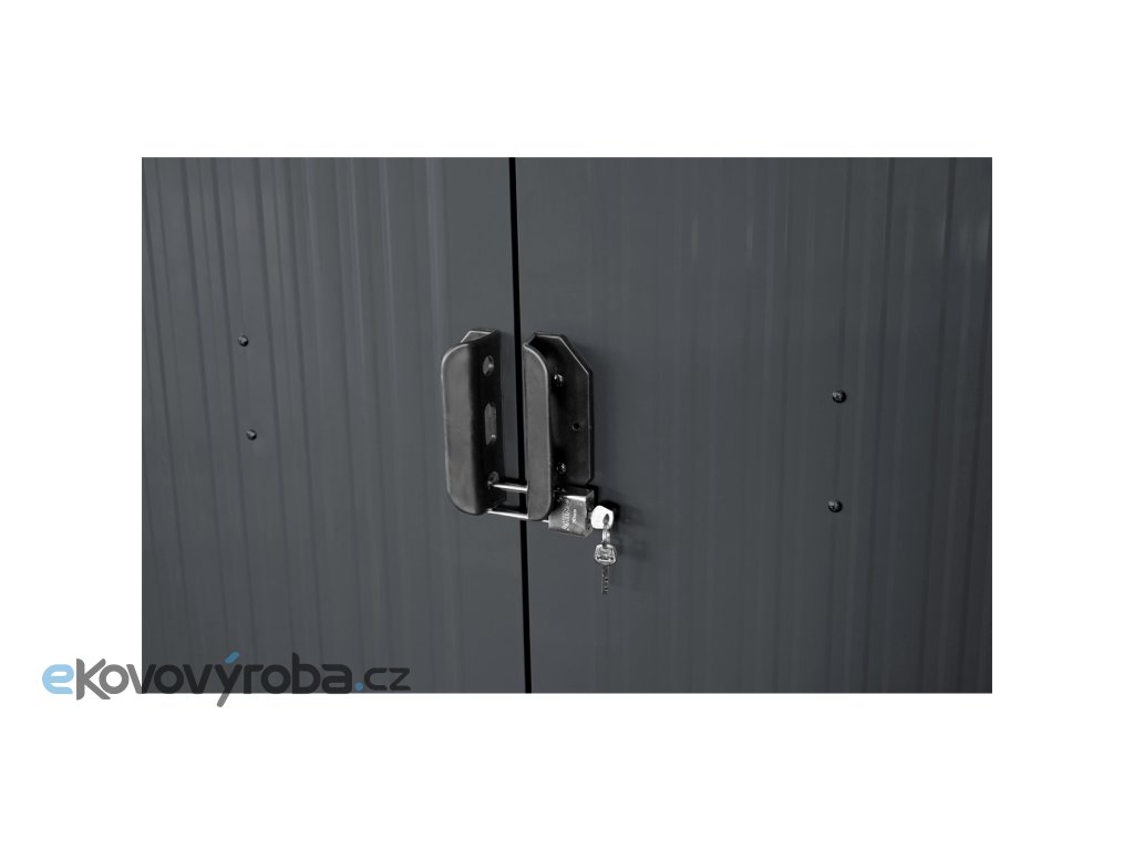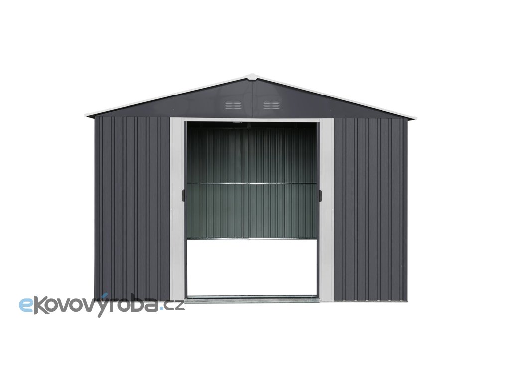 RMSA 8x10 Anthracite - zahradní domek kovový 3 x 2,4 m se sedlovou střechou antracit prostorný zahradní domek ideální pro uskladnění zahradní techniky a nářadí, grilovacích potřeb, zahradního nábytku, sportovního náčiní, hraček atd. domek je možno postavit svépomocí (doporučujeme 2 osoby), ideálně na pevný povrch (betonová deska, dlažba apod.) žárové zinkování rámu i profilovaných ocelových plechů spolu s kvalitní ochranou pomocí práškového nátěru jsou zárukou dlouhé životnosti a minimálních nároků na údržbu vyztužení střechy i bočních stěn pro zvýšenou odolnost vůči větru i sněhu vysoké dvoudílné posuvné dveře s madly je možné bezpečně uzamknout pomocí standardně dodávaného zámku 4 větrací otvory pro dobré proudění vzduchu a ochranu před vlhkostí moderní vzhled a elegantně působící barevná kombinace s oblíbenou antracitovou barvou Případné bezpečnostní pokyny, výstrahy a upozornění jsou součástí návodu k obsluze, který je k dispozici v sekci KE STAŽENÍ.