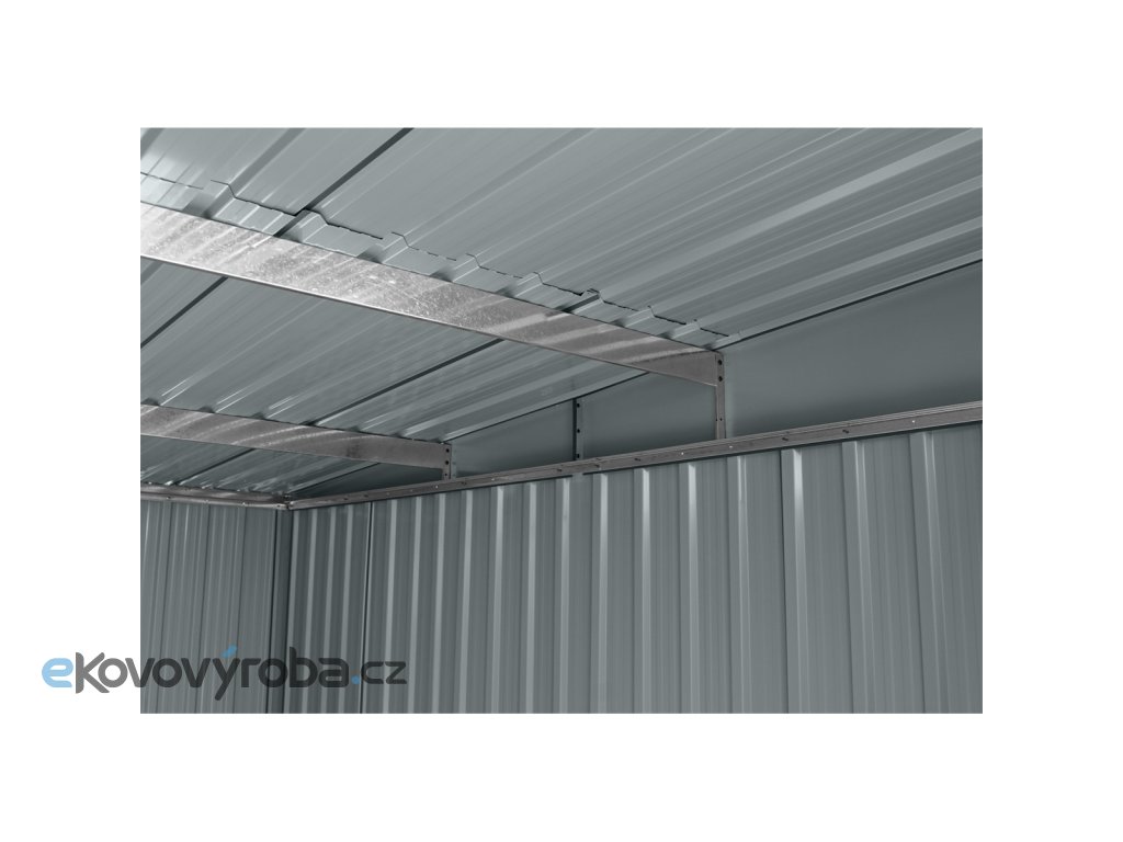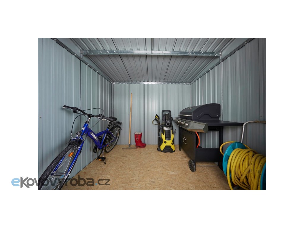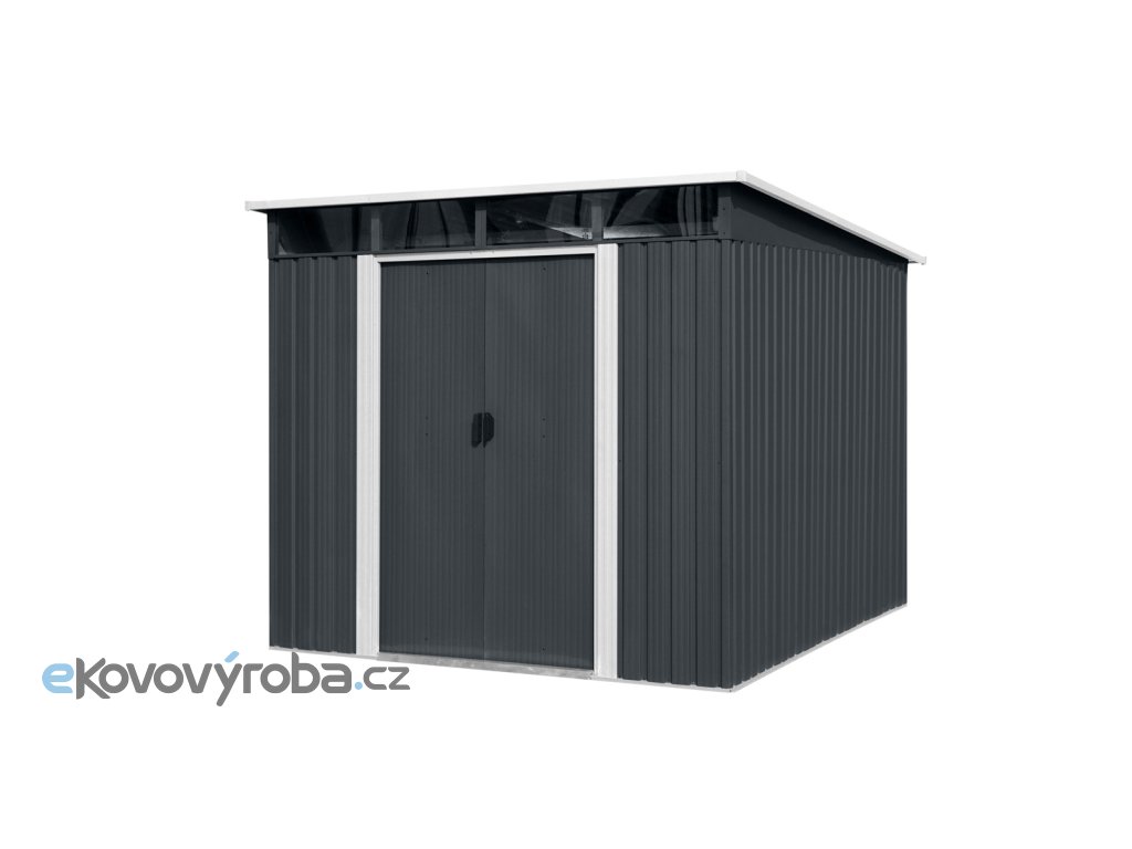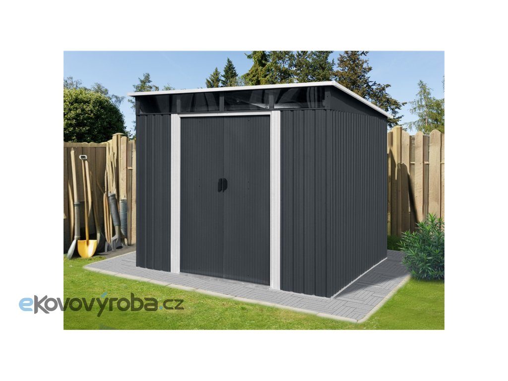 RMSP 9x8 Anthracite LUX - zahradní domek kovový 2,4 x 2,8 m s pultovou střechou antracit luxusní prostorný zahradní domek s rovnou pultovou střechou je ideální pro uskladnění zahradní techniky a nářadí, grilovacích potřeb, zahradního nábytku, sportovního náčiní, hraček atd. vnitřek domku je krásně prosvětlen díky horní části, která je tvořena z průhledných polykarbonátových panelů s kvalitní UV ochranou domek je možno postavit svépomocí (doporučujeme 2 osoby), ideálně na pevný povrch (betonová deska, dlažba apod.) žárové zinkování rámu i profilovaných ocelových plechů spolu s kvalitní ochranou pomocí práškového nátěru jsou zárukou dlouhé životnosti a minimálních nároků na údržbu vyztužení střechy a boků pro zvýšenou odolnost vůči větru i sněhu žlábky na odvod dešťové vody se dvěma vývody široké dvoudílné posuvné dveře s petlicí je možné bezpečně uzamknout pomocí standardně dodávaného zámku 2 větrací otvory pro dobré proudění vzduchu a ochranu před vlhkostí moderní vzhled a elegantně působící barevná kombinace světlé s oblíbenou antracitovou barvou Materiál/barva: kov, antracit Rozměry (d/š/v): 279 x 238 x 202 cm Plocha domku: 267 x 224 cm Rozměr dveří (v/š): 173 x 103 cm Dveře: dvojité, posuvné Skladovací objem: 10,7 m3 Antikorozní ochrana: žárové pozinkování Barva: vypalovací prášková barva Tloušťka ocelových panelů: 0,25 mm Tloušťka ocelového rámu: 0,6 mm Tloušťka prosklení: 2 mm čirý polykarbonát s UV ochranou Vyztužená střecha a stěny: ano Systém na odvod vody: ano Zámek dveří: ano Případné bezpečnostní pokyny, výstrahy a upozornění jsou součástí návodu k obsluze, který je k dispozici v sekci KE STAŽENÍ.