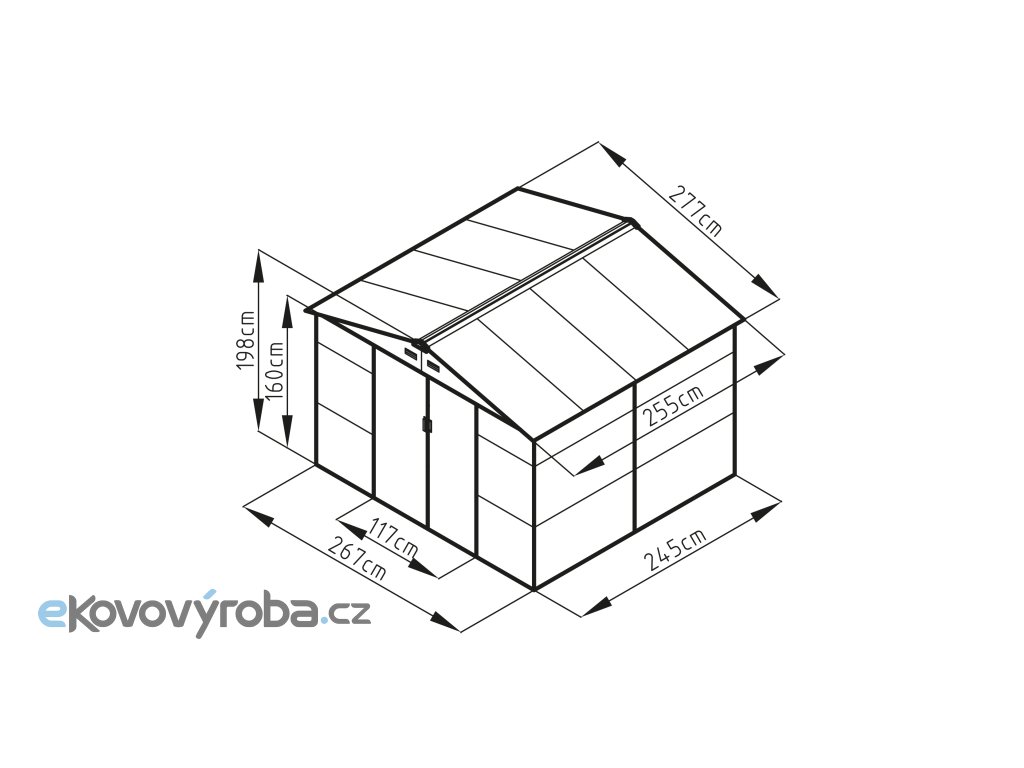 - Rozměry vnější (Š x V x H): 277 x 198 x 255 cm