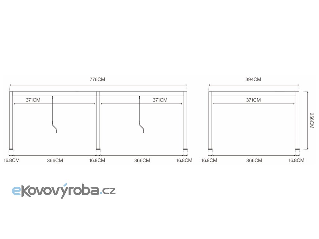 Bioklimatická pergola INTRO DUO 8x4 m, hliník - volně stojící