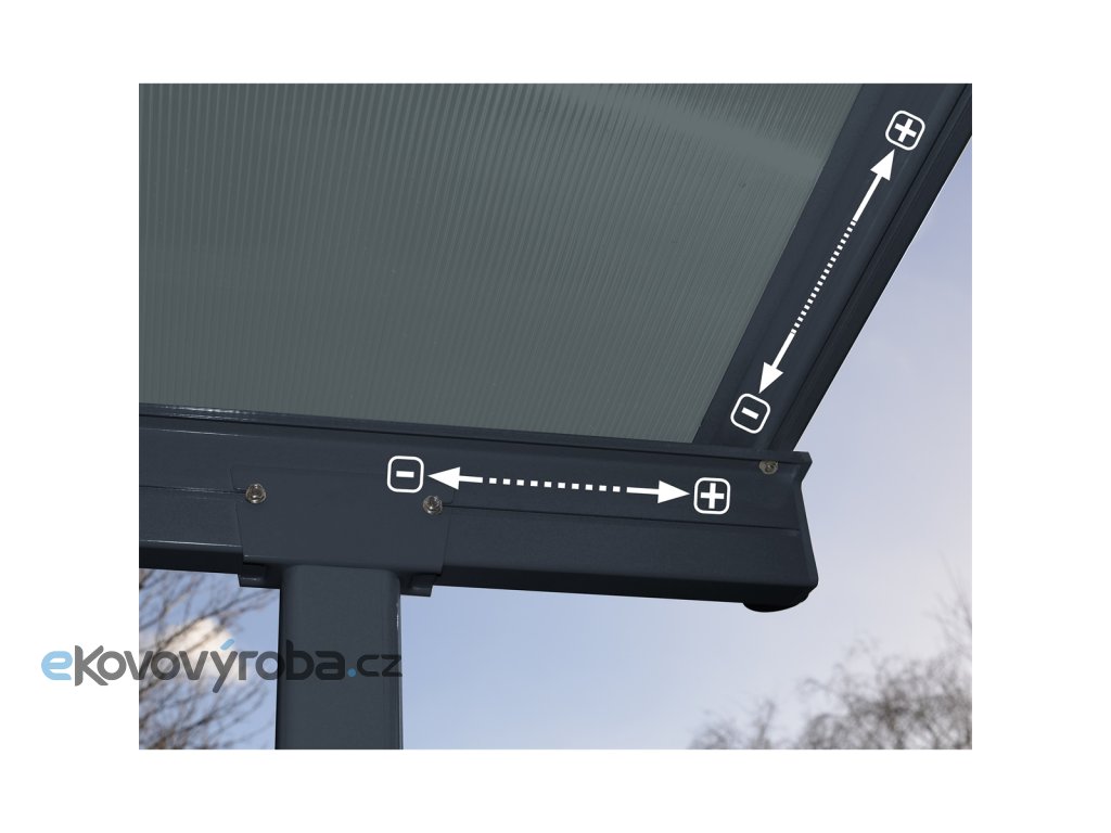 Možno využít z boku domu jako přístřešek pro auto, možno vybavit LED osvětlením, krycí zástěnou nebo boční stěnou