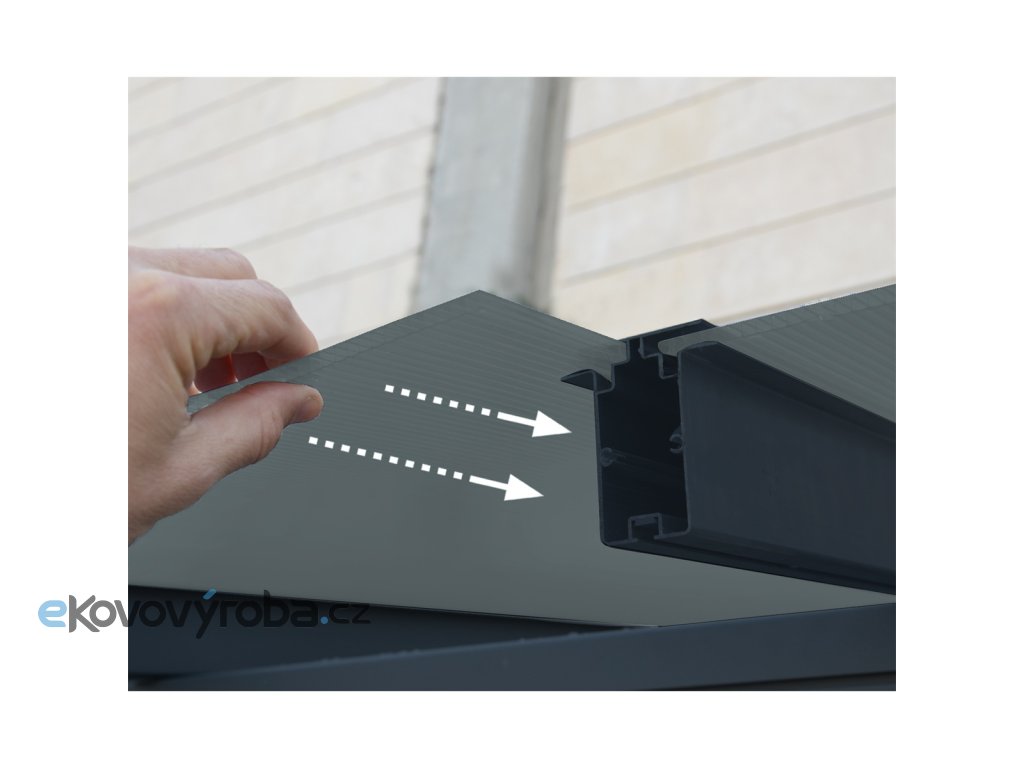 | Materiál desek (střecha) | bronzový polykarbonát 6 mm se 100 % UV ochranou |
