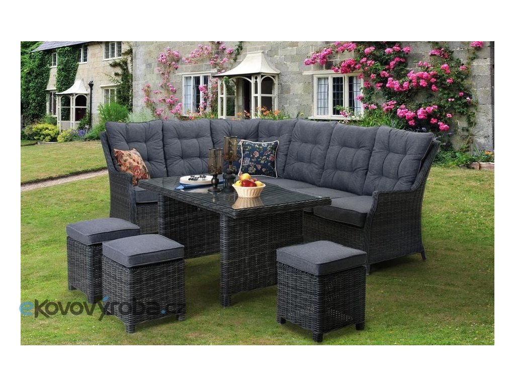obsah setu | 1xpravé sofa, 1xlevé sofa, 1xstůl, 3xtaburet |