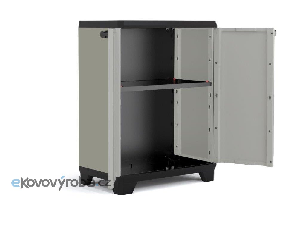 Skříň obsahuje celkem 1 přídavnou polici s výraznou nosností až 15 kg, která přijde vhod pro výrazně těžší předměty všeho druhu. Lze ji tedy využít pro skladování dílenského nářadí či zahradnických potřeb, kdy přijde vhod pro uložení náčiní, které by se jinam nevešlo. Díky svému provedení v univerzální šedé barvě zapadne do každého prostoru bez ohledu na jeho konceptuální styl.