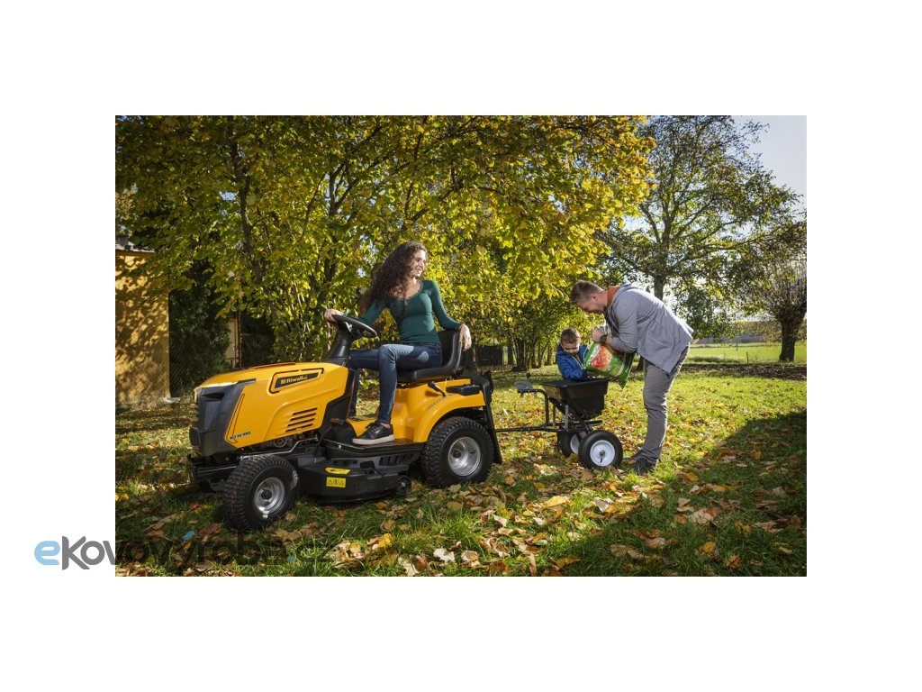 Traktor je posazen na velkých kolech (vpředu 15" a vzadu 18") pro lepší ochranu trávníku a větší komfort jízdy při překonávání teréních nerovností. Přední náprava je osazena systémem naklápění kol do strany při změně směru, který se stará o perfektní kopírování poloměru zatáčky bez zbytečného poškození trávníku způsobeného "hrnutím" kol dopředu.