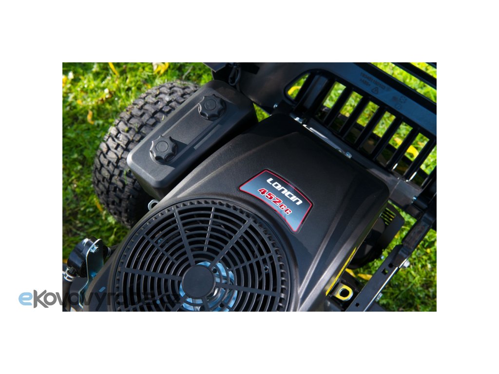 Srdcem celého stroje je jednoválcový motor Loncin o maximálním výkonu 12,5 HP a objemu 452 cm3. Motor je vybaven litinovou vložkou válce, tlakovým mazáním a robustním palivovým čerpadlem, což zaručuje dlouhou životnost a spolehlivý chod i v náročných podmínkách. Účinný vyvažovací systém snižuje vibrace a zaručuje stabilnější provoz. Díky optimalizovanému chlazení, dvojitému vzduchovému filtru a ventilům potažených slitinou kobaltu motor pracuje tiše, úsporně a s nízkými emisemi.