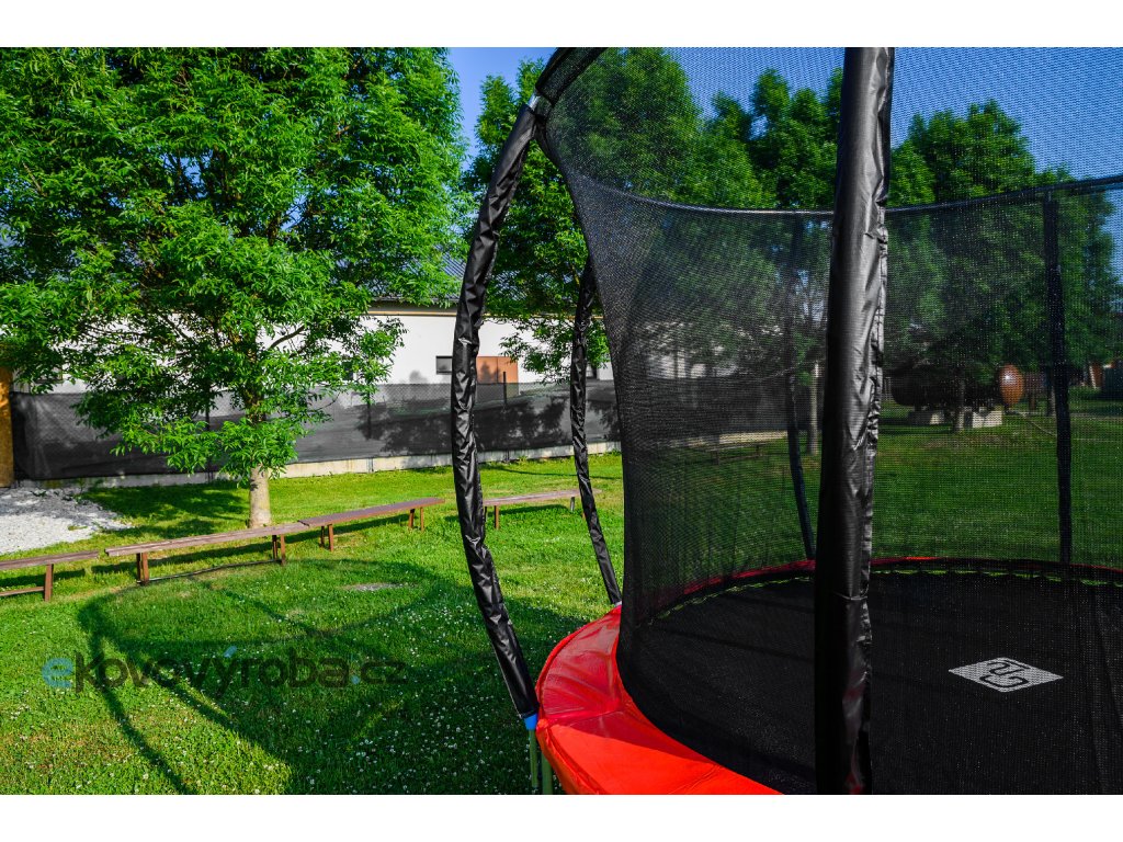 - Ochranná síť trampolíny je z vnitřní strany konstrukce, skákání na trampolíně je tak bezpečnější