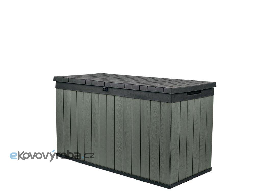 Najděte pro box ideální místo na zahradě. Díky struktuře, která připomíná dřevo, zapadne do každého prostředí. Uložené věci navíc můžete uzamknout uvnitř boxu. Hydraulický pístový systém zajistí plynulé a bezpečné zavírání a otevírání víka. Po zavření se na něj navíc usadí až 2 lidi.