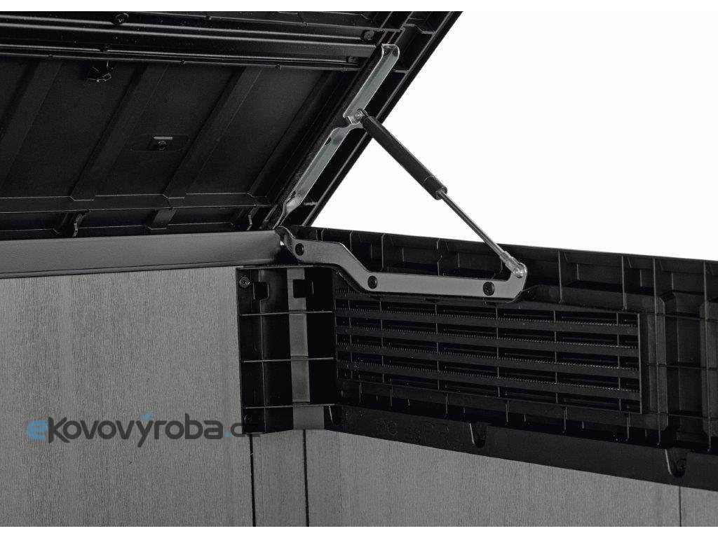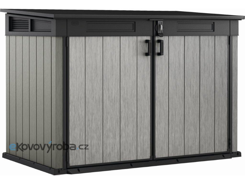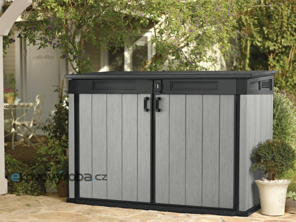 - Plastová skříňka Keter Grande Store svým vzhledem imituje strukturu dřeva