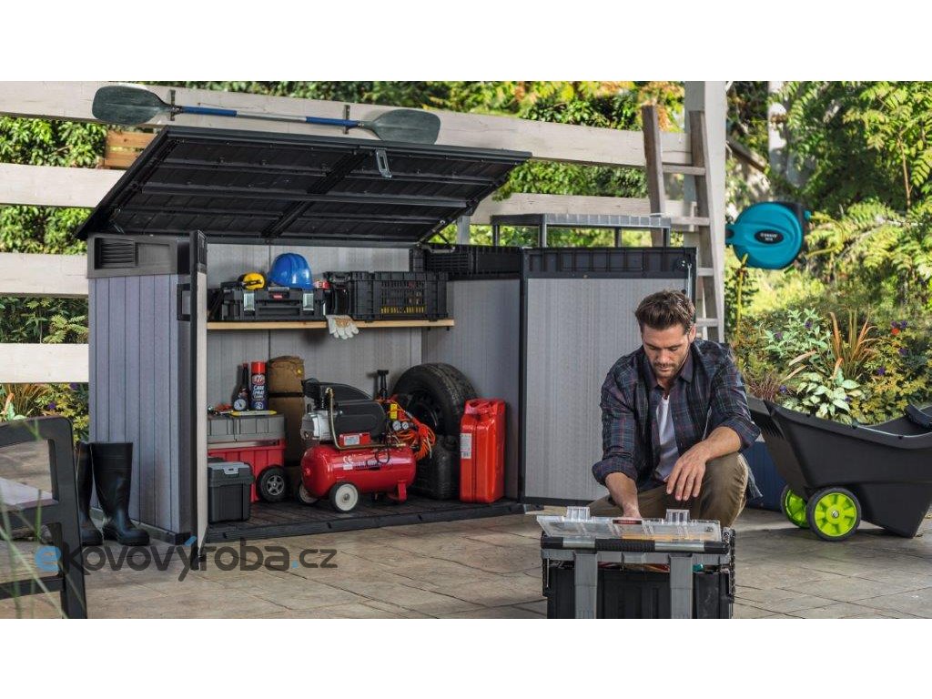 - Skříň je možné kombinovat se zahradními domky Keter Oakland a rozšířit tak svůj prostor pro skladování