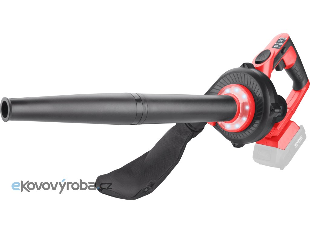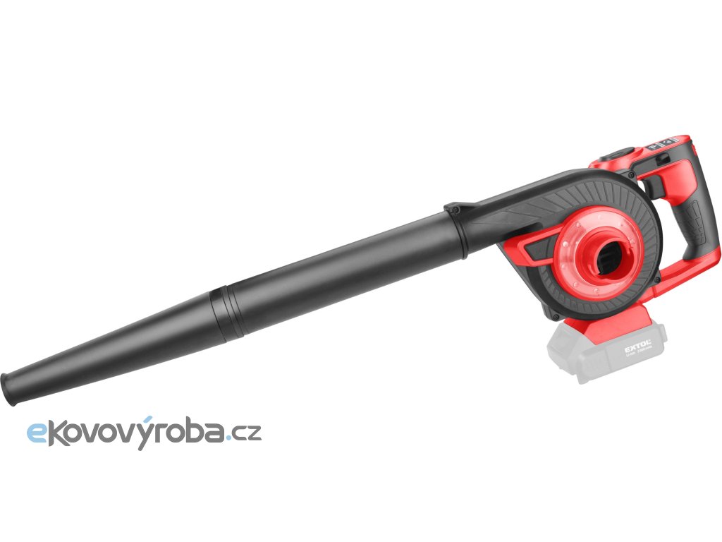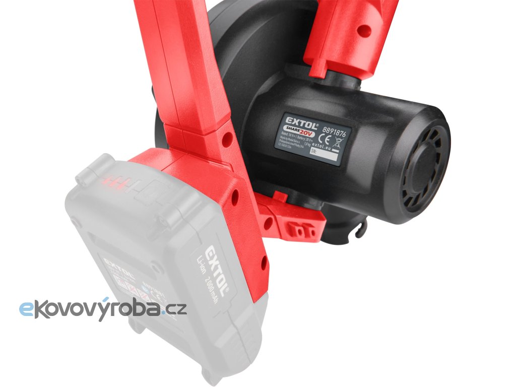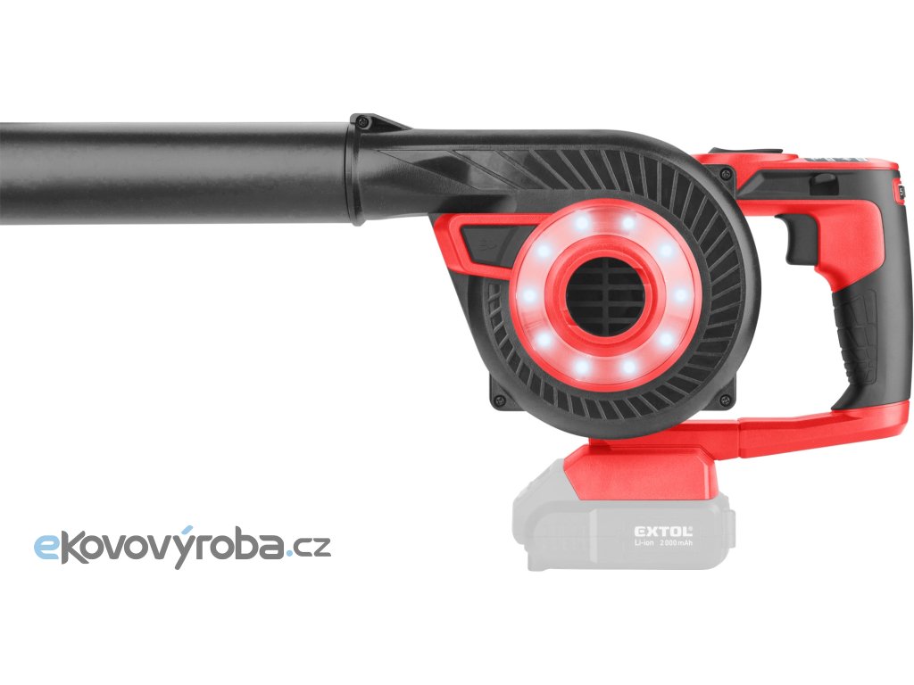 Aku fukar/vysavač 2v1 lze jednoduše přenastavit pro použití jako fukar, nebo jako vysavač se sběrným vakem. Fukarem lze z venkovních ploch proudem vzduchu komfortně odstranit např. zbytky trávy po sekání trávníku, piliny po řezání dřeva, suché jehličí či listí apod. Po přenastavení fukaru na vysavač se sběrným vakem lze vysát pevné částice např. piliny, jehličí a drobné listí z terasy, chodníku, v rozích apod. Sběrný vak lze snadno odejmout a vysypat. Stroj je vybaven regulací průtoku vzduchu dle potřeby a LED světlem pro nasvícení pracovního místa, což je velmi užitečné pokud potřebujete něco vysát v rohu. Když připojíte k fukaru přiložené nástavce, můžete ho použít pro nafukování lehátek, bazénů, kánoí, stanů apod. Díky zajímavému designu je stroj velmi malý a jednoduše přenosný. Pro běžnou práci dostačují jeden nebo dva 2000mAh akumulátory, které můžete rychle nabít v rychlonabíječce, pro náročnější nebo delší práci doporučujeme větší akumulátory s kapacitou 4000–8000mAh. Akumulátor má indikátor nabití a lze použít ve všech typech nářadí řady EXTOL SHARE20V. Díky použité Li-ion technologii je ho možné kdykoliv dobíjet, aniž by se tím snižovala jeho kapacita. Li-ion akumulátor ztrácí energii vlivem samovybíjení velmi pomalu a vydrží dlouho nabitý a připravený k použití.