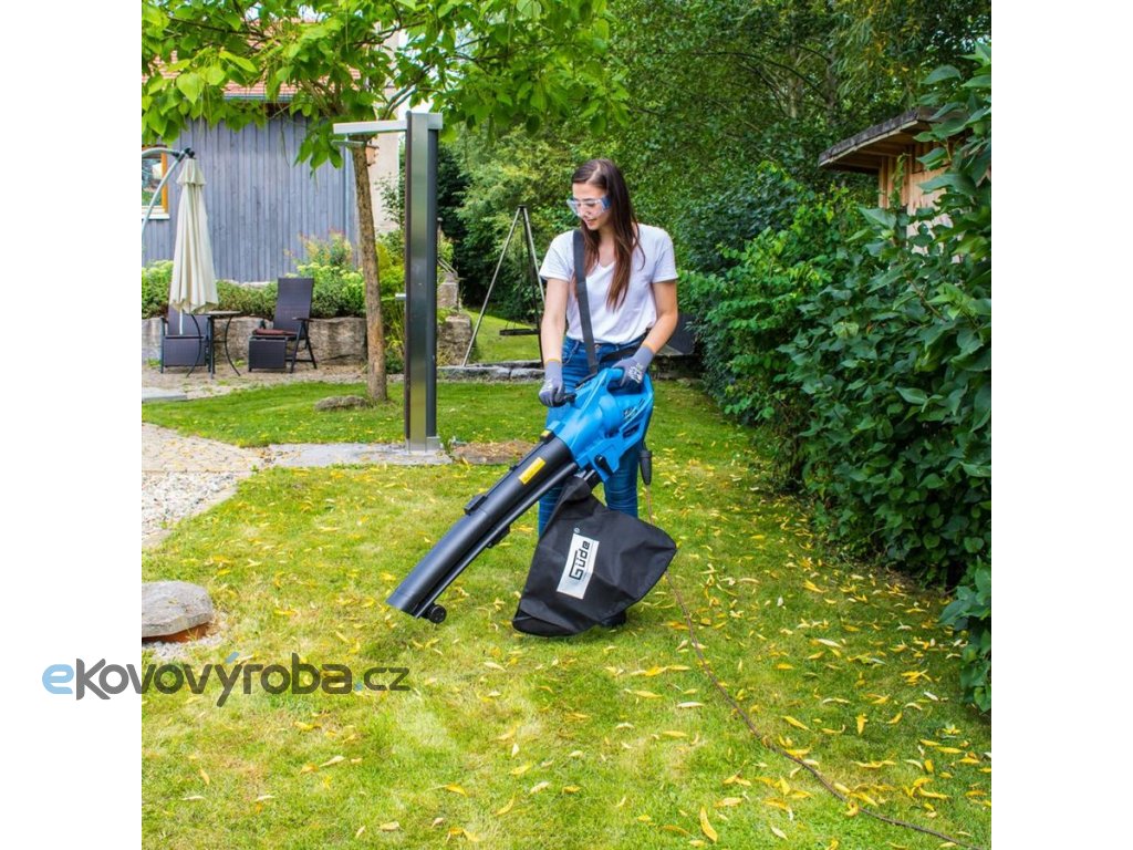 Elektrický vysavač listí GÜDE, určený pro úklidové práce v okolí domu - na zahradě, chodníku, příjezdové cestě nebo ve dvoře (sběr suché trávy, spadaného listí, drobných větviček apod.).