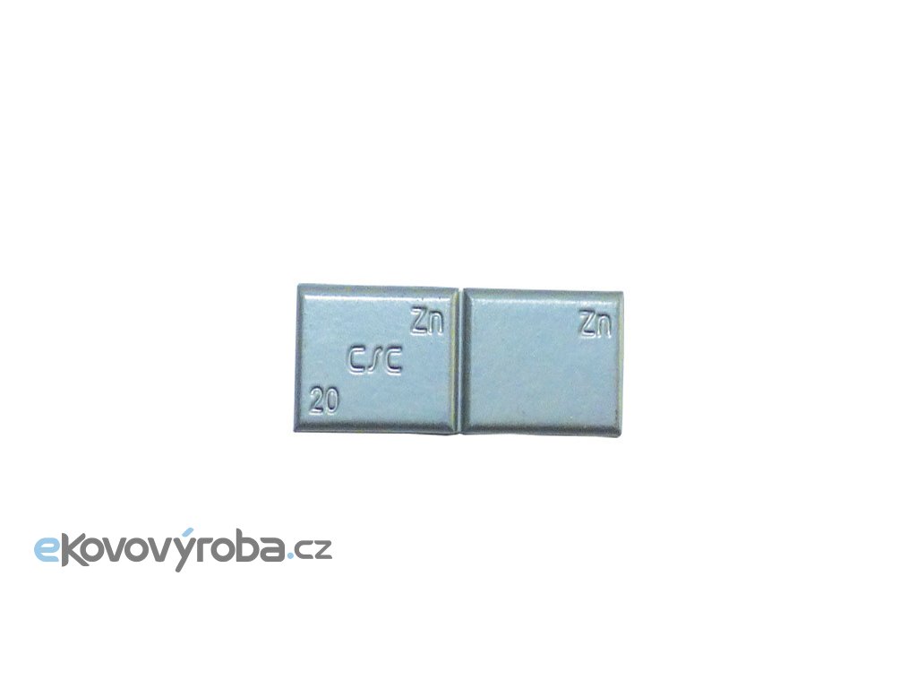 Celistvé zinkové nalepovací závaží o hmotnosti 20 g pro vyvážování disků.