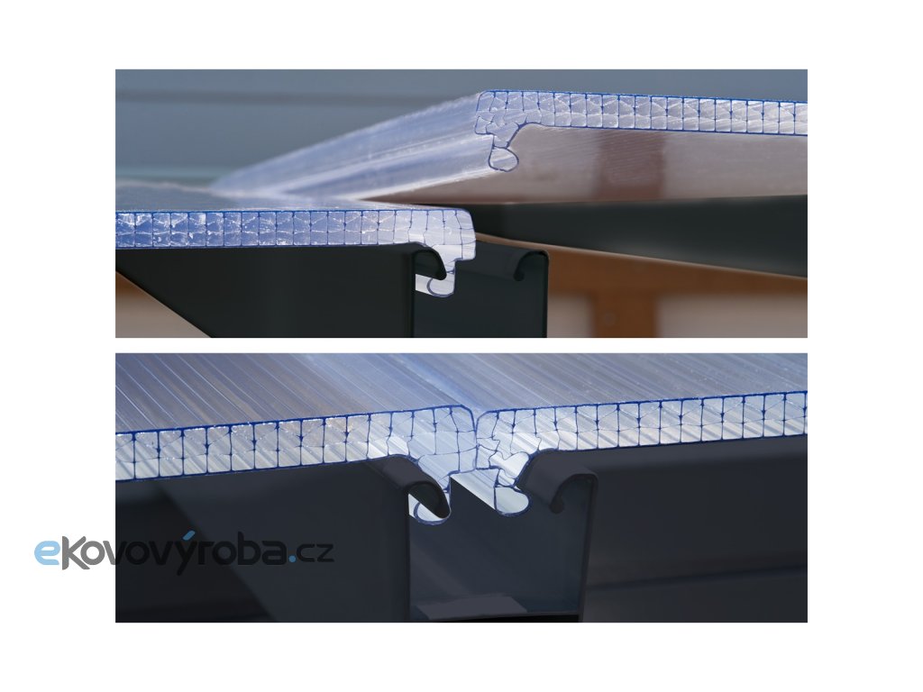 Akrylátové desky s vysokou odolností proti nárazu. Dokonale propouštějí světlo po celou dobu své životnosti. "Click N’ Lock" systém střešních spojů pro bezpečnou a jednoduchou montáž, zabraňuje pronikání vody mezi konstrukcí a prosklenými plochami.