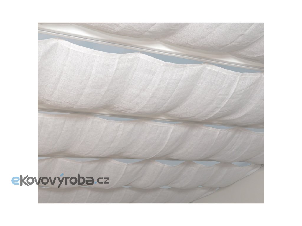 Praktická krémově bílá vícedílná zatahovací zástěna, která se snadno instaluje na lanka pod střechu. V případě slunečného počasí účinně chrání před přílišným přehříváním interiéru.