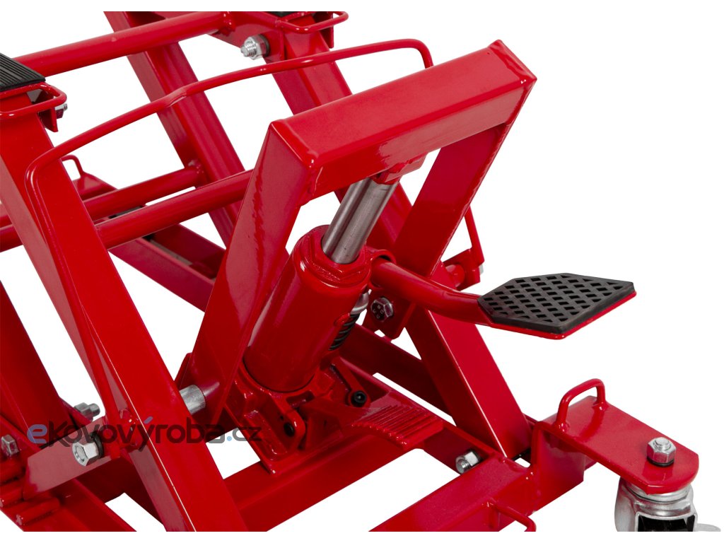 Hydraulický zvedák motocyklů s pedálovým ovládáním a nosností až 680 kg.